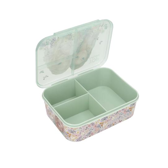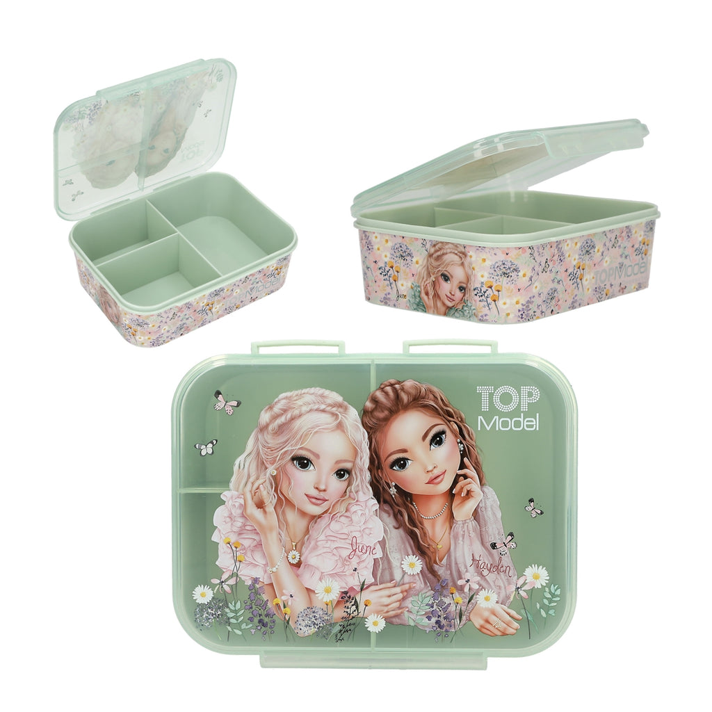 Λουλούδια, ντελικάτες πεταλούδες και όμορφα TOPModels: το φαγητοδοχείο σε χρώμα φασκόμηλου είναι περίτεχνα τυπωμένο στο ενιαίο καπάκι με αρθρώσεις και στα πλάγια. Με τρία διαφορετικά μεγέθη θηκών για να νιώθετε την πείνα σας εν κινήσει. Λόγω της εκτύπωσης, συνιστάται ο καθαρισμός στο χέρι. Δεν είναι κατάλληλο για πλυντήριο πιάτων ή φούρνο μικροκυμάτων.