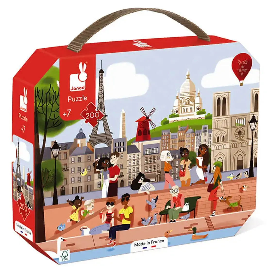 Ανακάλυψε τη μαγεία του Παρισιού μέσα από αυτό το εκπαιδευτικό και διασκεδαστικό παζλ των 200 κομματιών. Με όμορφα σχέδια που απεικονίζουν εμβληματικά τοπόσημα όπως ο Πύργος του Άιφελ, η Notre‑Dame, το Moulin Rouge κ.ά., το παιδί θα αναπτύξει τις δεξιότητές του στην παρατήρηση, τη μνήμη και την λεπτή κινητικότητα.