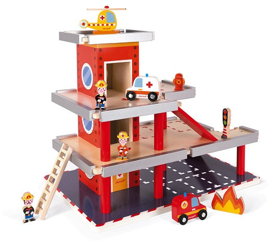 Ένας εντυπωσιακός ξύλινος πυροσβεστικός σταθμός θα χαρίσει στους μικρούς μας φίλους πολλές στιγμές διασκέδασης, αλλά ταυτόχρονα θα τους βοηθήσει να καταλάβουν και το σπουδαίο επάγγελμα του πυροσβέστη. Ο σταθμός αποτελείται από 3 ορόφους, ενώ περιλαμβάνει ελικοδρόμιο και ασανσέρ. Επιπλέον, διαθέτει 10 ξύλινα αξεσουάρ, όπως ελικόπτερο, όχημα διάσωσης, πυροσβεστικό όχημα, 3 πυροσβέστες κτλ. Κατάλληλο από 3 ετών.