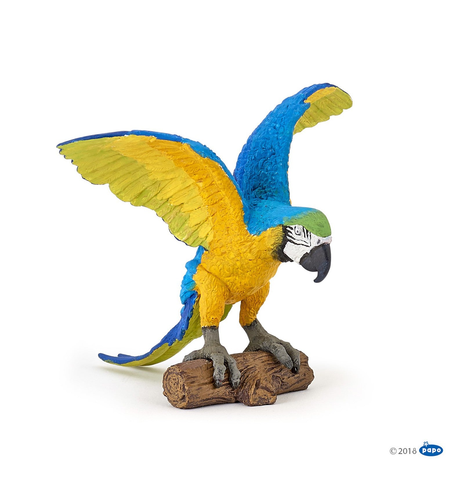Η φιγούρα Papo 50235 αναπαριστά έναν μπλε και κίτρινο μακάο, γνωστό για τα έντονα χρώματα και την εντυπωσιακή του εμφάνιση. Είναι χειροποίητα βαμμένη με προσοχή στη λεπτομέρεια, προσφέροντας ρεαλιστική εμφάνιση. Οι διαστάσεις της είναι περίπου 9 εκ. μήκος, 9,5 εκ. πλάτος και 7,7 εκ. ύψος. Αυτή η φιγούρα εντάσσεται στη σειρά "Wild Animal Kingdom" της Papo, η οποία περιλαμβάνει διάφορα ζώα της άγριας φύσης.