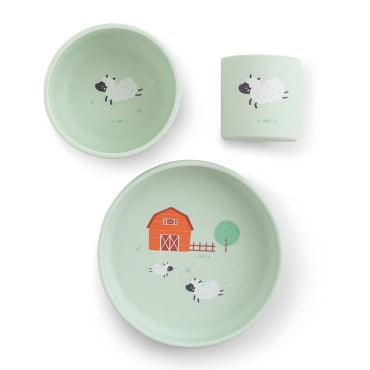 Περιλαμβάνει: Πιάτο, μπολ και ποτήρι, διακοσμημένα με χαριτωμένα σχέδια.