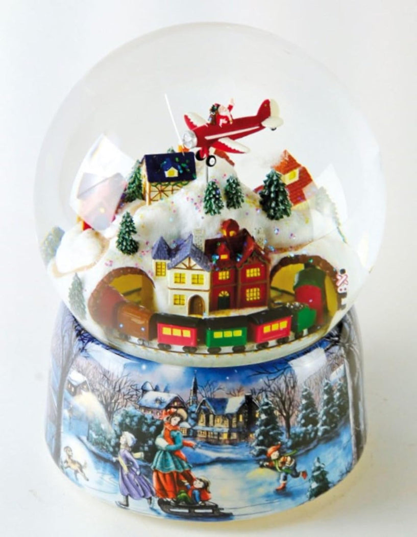 Μέσα στη γυάλινη σφαίρα, ο Άγιος Βασίλης ετοιμάζεται για την πιο χαρούμενη πτήση του χρόνου, καθισμένος σε ένα κόκκινο αεροπλάνο γεμάτο δώρα και γιορτινή διάθεση. Με μηχανισμό περιστροφής, λαμπερές νιφάδες χιονιού γεμίζουν τη σφαίρα, δημιουργώντας μια μαγευτική σκηνή που θα ξετρελάνει μικρούς και μεγάλους, Ταυτόχρονα ακούγεται η υπέροχη χριστουγεννιάτικη μελωδία.