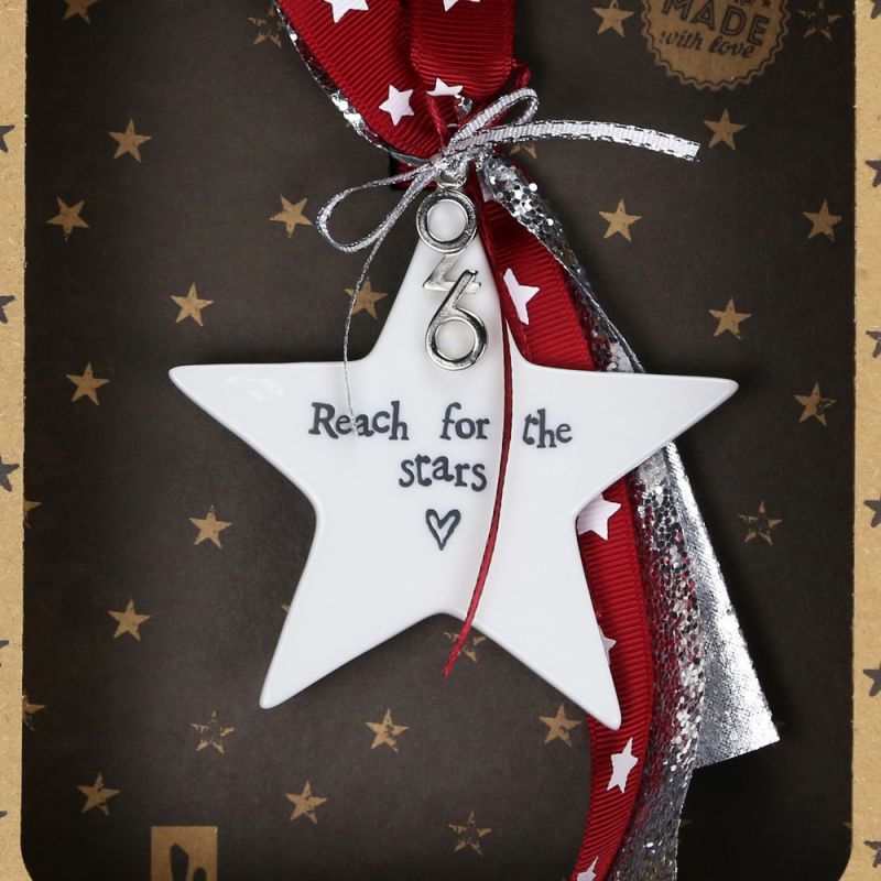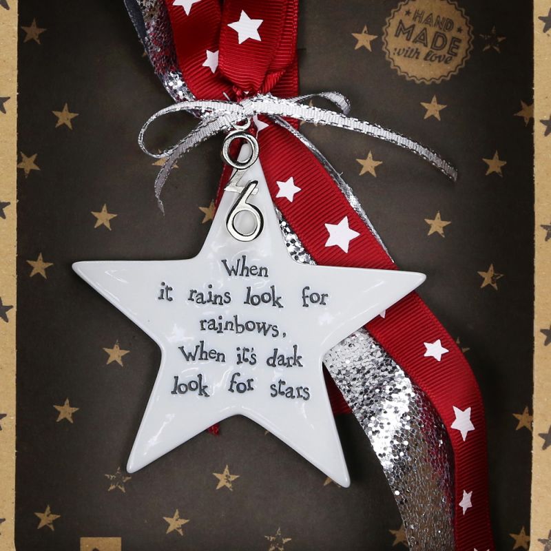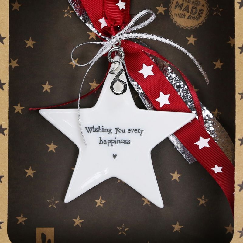 Πορσελάνινο γούρι σε σχήμα αστεριού, σύμβολο φωτός και αισιοδοξίας.