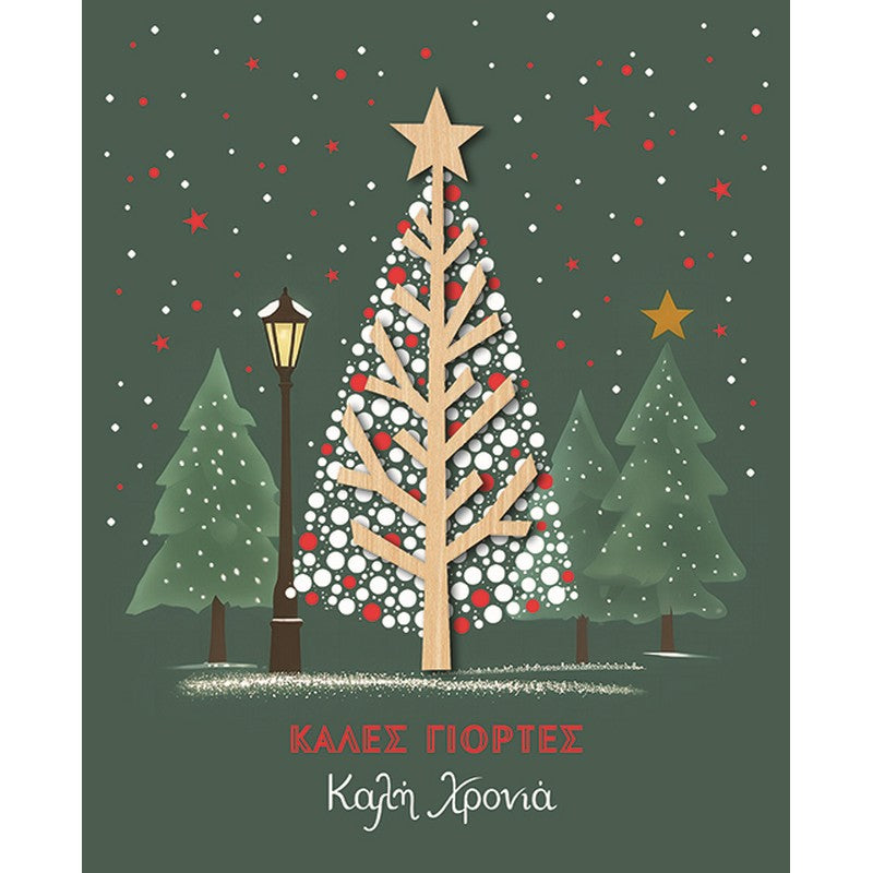 Φώτισε τις φετινές ευχές σου με την εντυπωσιακή XMAS HOLLYWOOD κάρτα! Μια μοναδική χριστουγεννιάτικη κάρτα που συνδυάζει γιορτινή λάμψη και παραδοσιακή αισθητική, συνοδευόμενη από ξύλινο στολίδι “Δέντρο Φανάρι”, που μπορεί να διακοσμήσει το χριστουγεννιάτικο δέντρο ή να αποτελέσει ξεχωριστή πινελιά σε κάθε δώρο