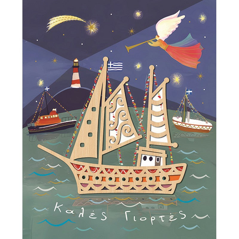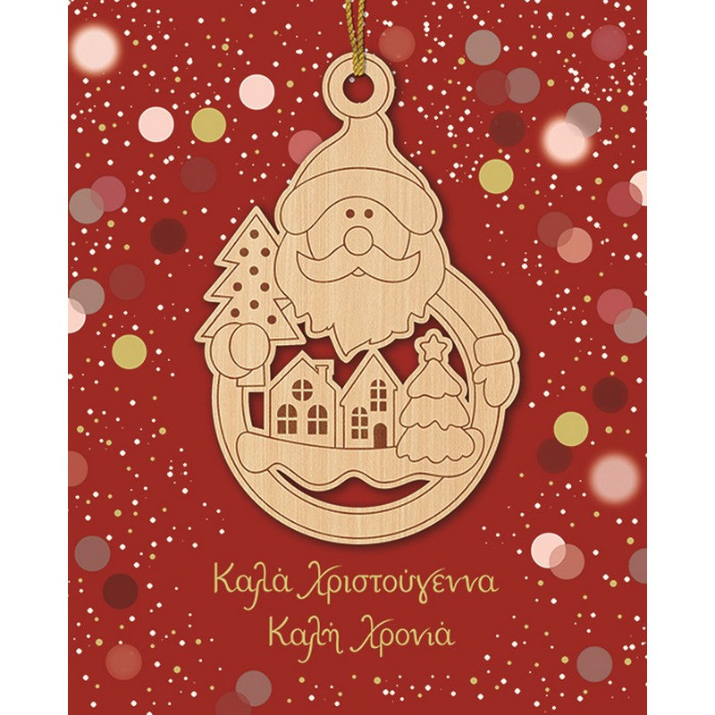 ΚΑΡΤΑ XMAS HOLLYWOOD ME ΞΥΛΙΝΟ ΚΡΕΜΑΣΤΟ ΣΤΟΛΙΔΙ ΑΗ ΒΑΣΙΛΗΣ