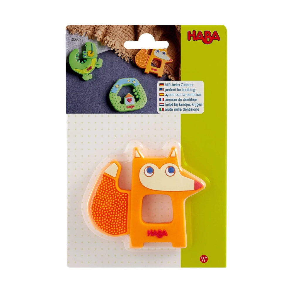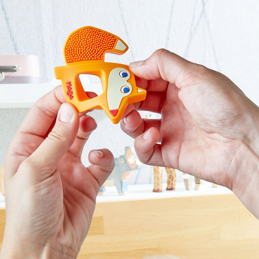 Ανακουφίστε τα πρώτα δοντάκια του μωρού σας με το βρεφικό μασητικό οδοντοφυίας της Haba σε σχέδιο χαριτωμένης αλεπούς. Κατάλληλο για μωρά από 3 μηνών και άνω, το μασητικό βοηθά στη διαδικασία της οδοντοφυίας, ανακουφίζοντας τα ευαίσθητα ούλα και προσφέροντας ασφαλή παιχνίδι στο μωρό.