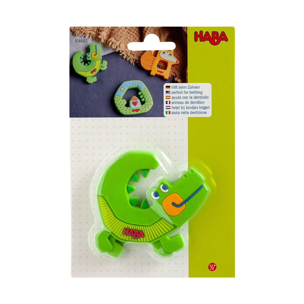 Ανακουφίστε τα ευαίσθητα ούλα του μωρού σας με το βρεφικό μασητικό οδοντοφυίας της Haba σε χαριτωμένο σχέδιο κροκόδειλου. Ιδανικό για μωρά από 3 μηνών και άνω, προσφέρει ασφαλή παιχνίδι και ανακούφιση στα ούλα.