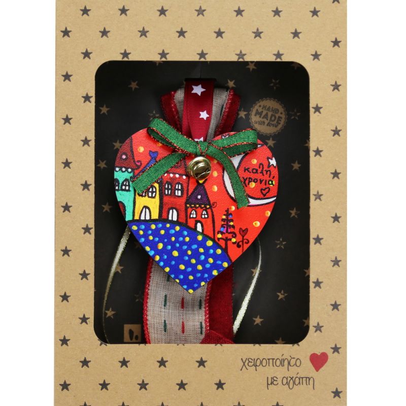 Φέρε αγάπη και χαρά στο σπίτι σου με αυτό το γλυκύτατο στολίδι-γούρι σε σχήμα καρδιάς! Το “Καρδιά Χωριό” συμβολίζει θετική ενέργεια, ζεστασιά και γιορτινή διάθεση και είναι ιδανικό για να στολίσεις το δέντρο, το παράθυρο ή το αγαπημένο σου ράφι.