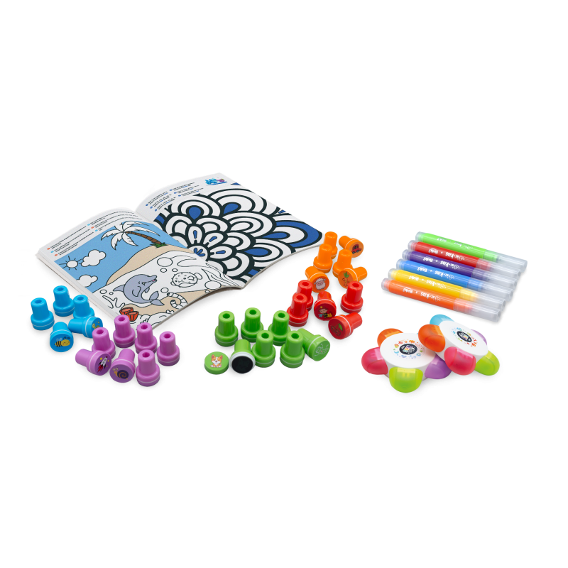 Με το σετ αυτό, τα παιδιά μπορούν να δημιουργήσουν όμορφες κάρτες, προσκλήσεις, ζωγραφιές ή ακόμα και να διακοσμήσουν τα τετράδιά τους με πολύχρωμες σφραγίδες και μελάνια. Το σετ περιλαμβάνει ποικιλία σφραγίδων, μελάνια και φύλλα δραστηριοτήτων, ιδανικά για ατέλειωτες ώρες δημιουργικής απασχόλησης.
