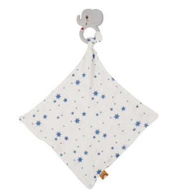Ένα πρακτικό, διπλό βοηθητικό για μωρά: ένας μαλακός δακτύλιος για δάγκωμα (μασητικό), συνδεδεμένος με ένα πανάκι-κουβερτάκι με θέμα τον ελέφαντα. Η σειρά «Die Spiegelburg BabyGlück» υποστηρίζει την πρώτη περίοδο οδοντοφυΐας με ασφάλεια και άνεση.