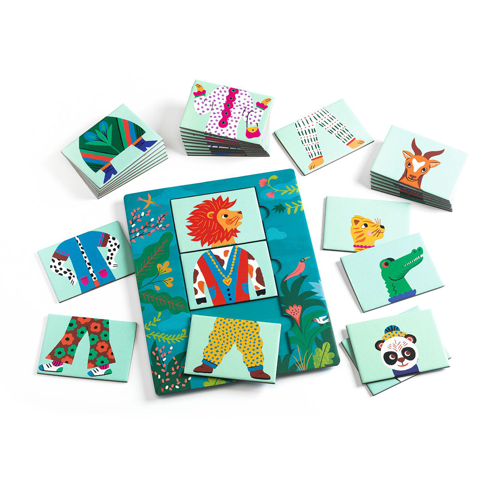 Εκπαιδευτικό παιχνίδι συνδυασμών από την εταιρεία Djeco, που καλεί τα παιδιά να δημιουργήσουν αστεία και αλλοπρόσαλλα ζωάκια συνδυάζοντας κεφάλια, σώματα και πόδια. Με απλό τρόπο παιχνιδιού, εύκολο να εξηγηθεί και να παιχτεί είτε ατομικά είτε με την οικογένεια, το σετ ενθαρρύνει τη φαντασία και δίνει αφορμή για γέλια και δημιουργικότητα. Τα παιδιά ανακαλύπτουν συνεχώς νέους απίθανους συνδυασμούς και φτιάχνουν πρωτότυπες φιγούρες σε έντονο pop στιλ, καλλιεργώντας τη δημιουργική τους σκέψη. Ένα παιχνίδι που υπόσχεται αυθόρμητη διασκέδαση και ατελείωτες ιστορίες με φανταστικά ζώα.