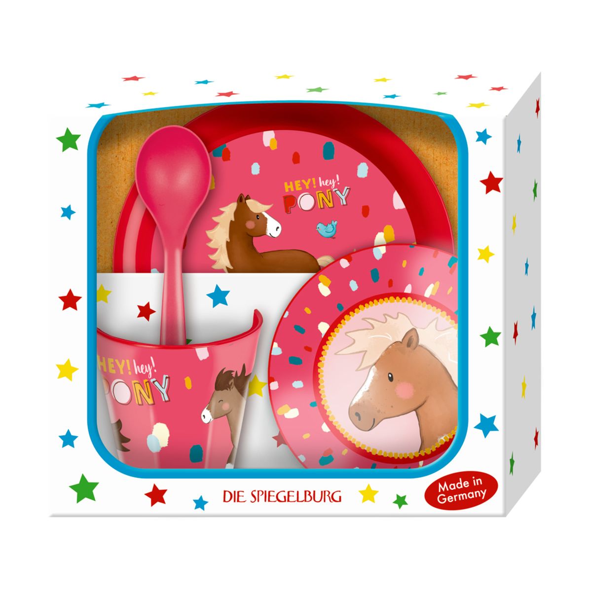 Το Σετ Φαγητού πόνυ είναι ένα όμορφο και πρακτικό σετ για το φαγητό του παιδιού. Περιλαμβάνει πιατάκι, κουταλάκι ένα μπολ για το φαγητό και ένα ποτηράκι, τα οποία είναι φτιαγμένα από υψηλής ποιότητας υλικά για να εξασφαλίζουν τη διάρκεια και την ασφάλεια. Το σετ διαθέτει επίσης όμορφα σχέδια που συνδυάζουν λειτουργικότητα και αισθητική, ενώ είναι εύκολο να καθαριστεί και να διατηρηθεί. Ιδανικό για κάθε παιδί, το σετ αυτό προσφέρει άνεση και στυλ στον καθημερινό του φαγητό.