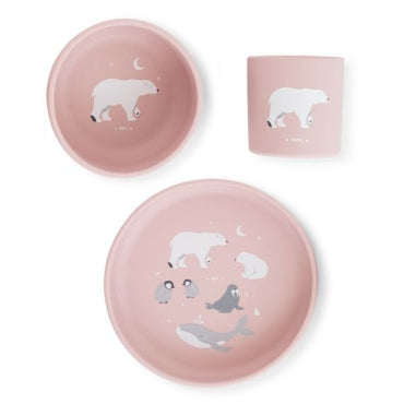 Περιλαμβάνει: Πιάτο, μπολ και ποτήρι, διακοσμημένα με χαριτωμένα σχέδια.
