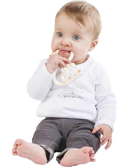 Ο πρώτος δακτύλιος οδοντοφυϊας, φτιαγμένος από 100% φυσικό καουτσούκ, ιδανικό για να ανακουφίζει τα ούλα του μωρού σας.